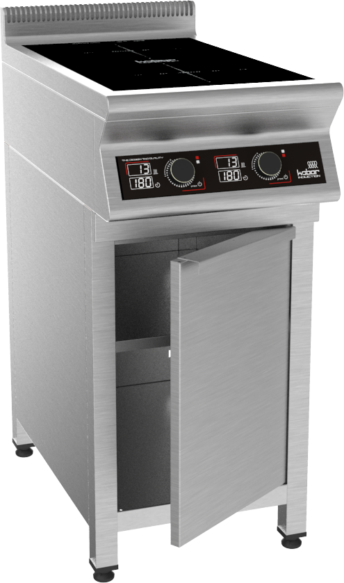 Плита индукционная на закрытой подставке, 2 конфорки мощностью 2х3,5кВт, электронная панель управления с цифровой индикацией, 13 уровней нагрева, таймер до 180мин., съемный жировой фильтр, корпус из н.с. AISI 304, регулируемые по высоте ножки, рабочая поверхность - стеклокерамика 6мм, 7 кВт, 220В, вес 39 кг.